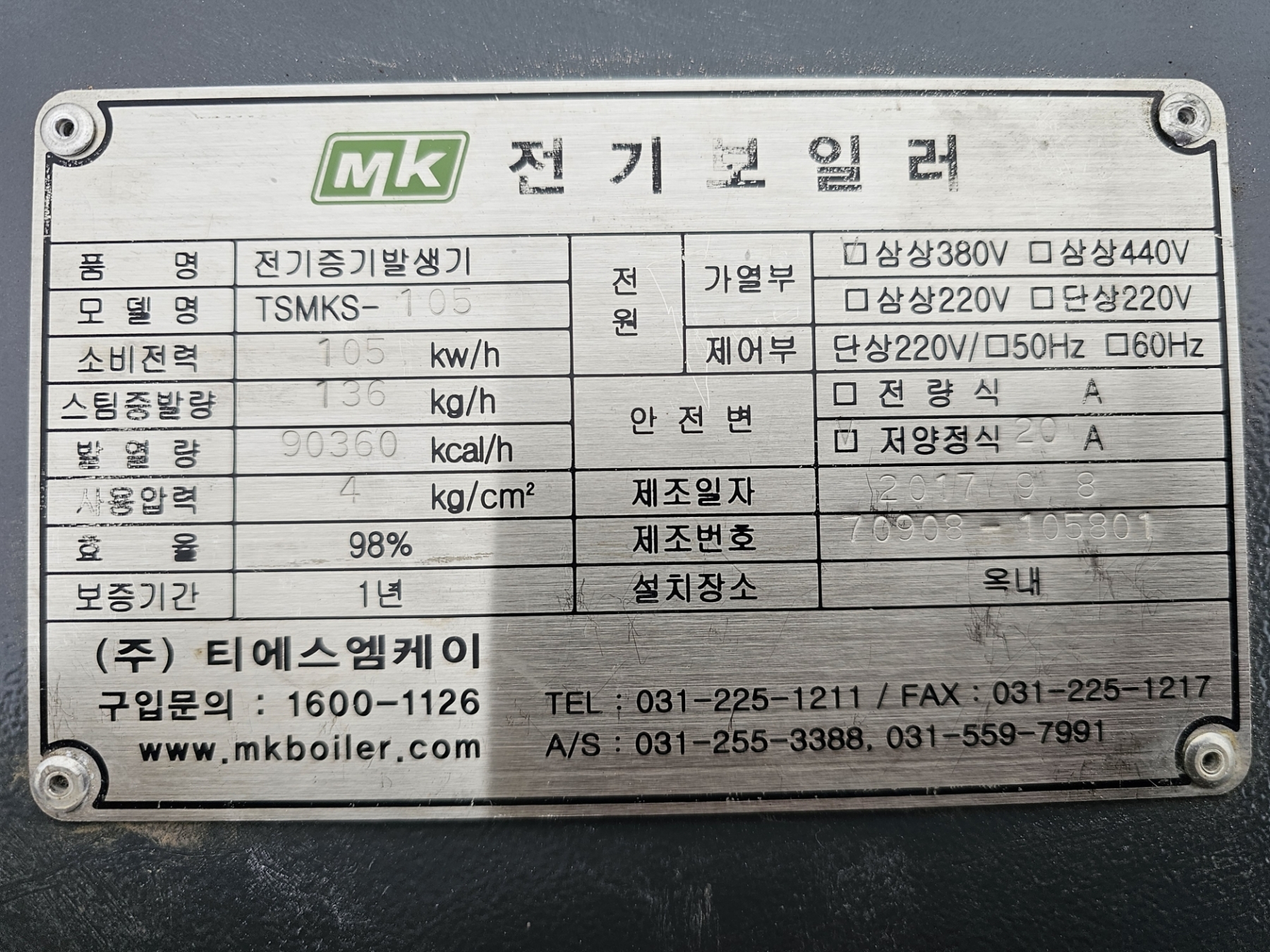 Àü±âÁõ±â¹ß»ý±â105KW(Àü±âº¸ÀÏ·¯105KWÀü±â½ºÆÀº¸ÀÏ·¯105KW)